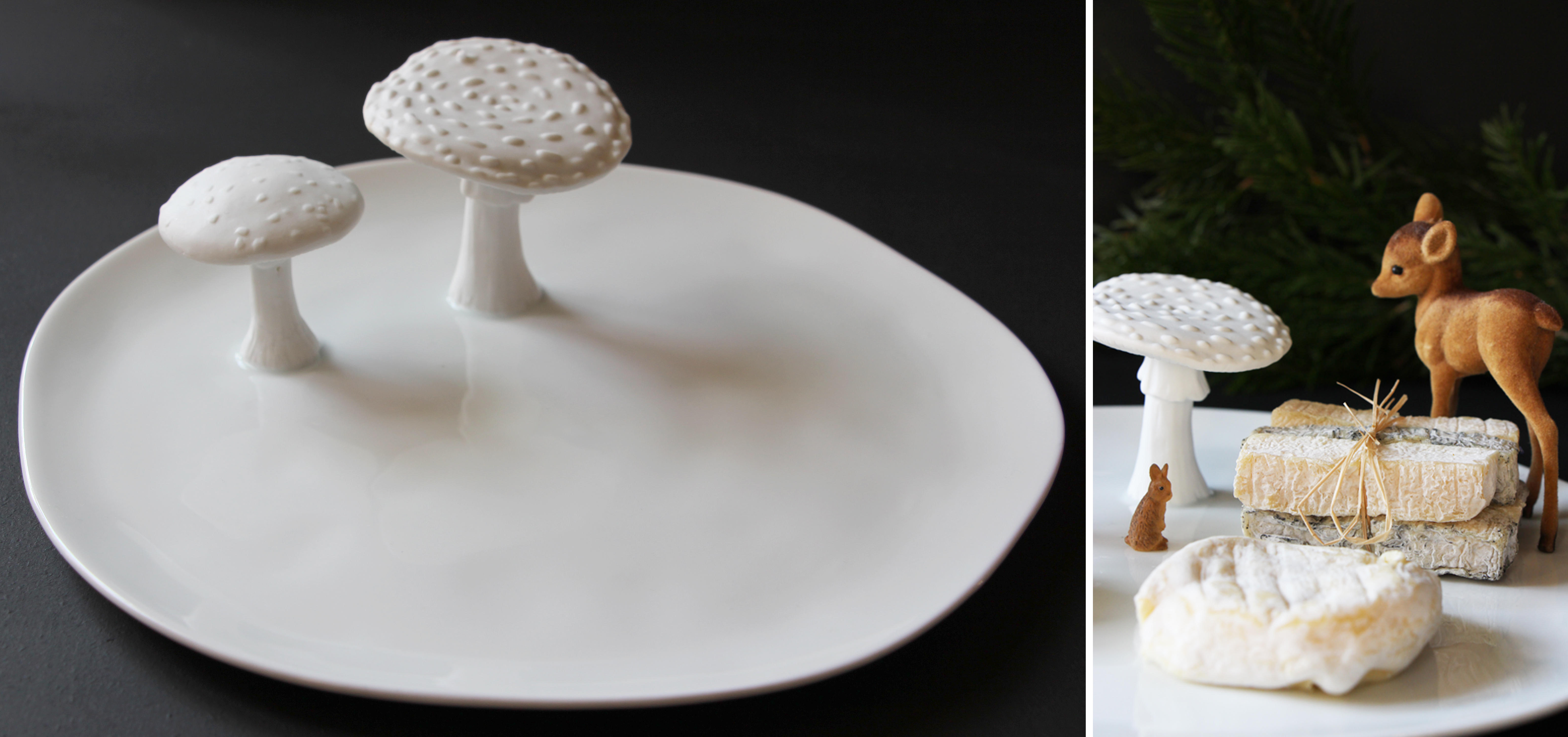 Nous sommes fan de ce joli plat de présentation, très Alice aux Pays des Merveilles. Il ne manque plus que la chenille fumant son narguilé sur le gros champignon.