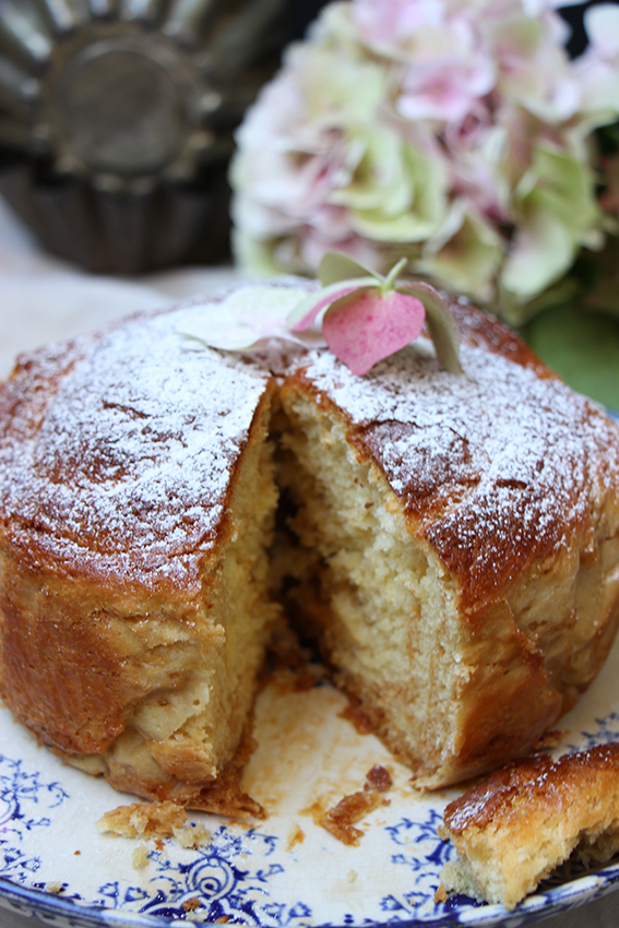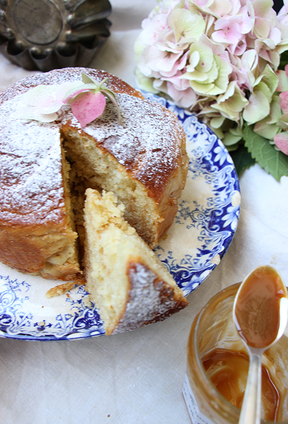 Étalez la confiture de lait sur toute la surface de la pâte à brioche. Roulez la pâte sur la grande largeur pour obtenir un long boudin. Puis enroulez-la sur elle-même pour obtenir un escargot. Placez-le boudin dans un moule de 18 cm que vous aurez au préalable garni de papier cuisson. Le laisser 1 h 30 à une nuit recouvert d’un torchon. La pâte va pousser et doubler de volume. Plus vous laissez votre pâte pousser, plus la levure va travailler et meilleur ce sera.