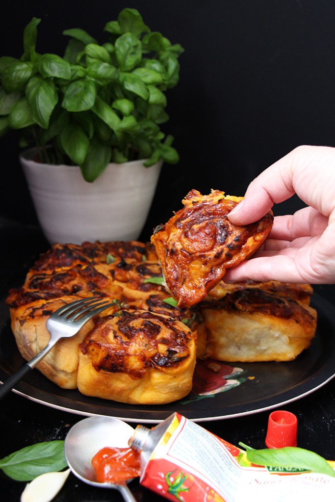 À l’aide d’un couteau, coupez en 10-12 rouleaux. Placez les rouleaux dans le plat de cuisson préparé. Cuire les petits rolls pendant 20 à 25 minutes ou jusqu’à ce que le fromage bouillonne. Servez chaud et dévorez.