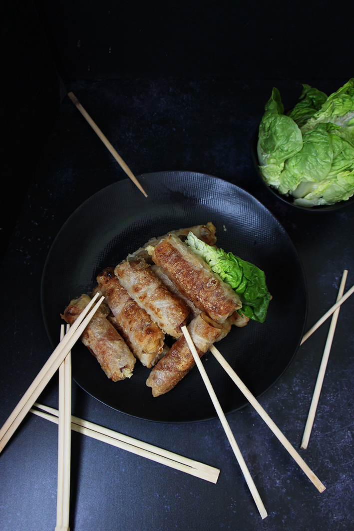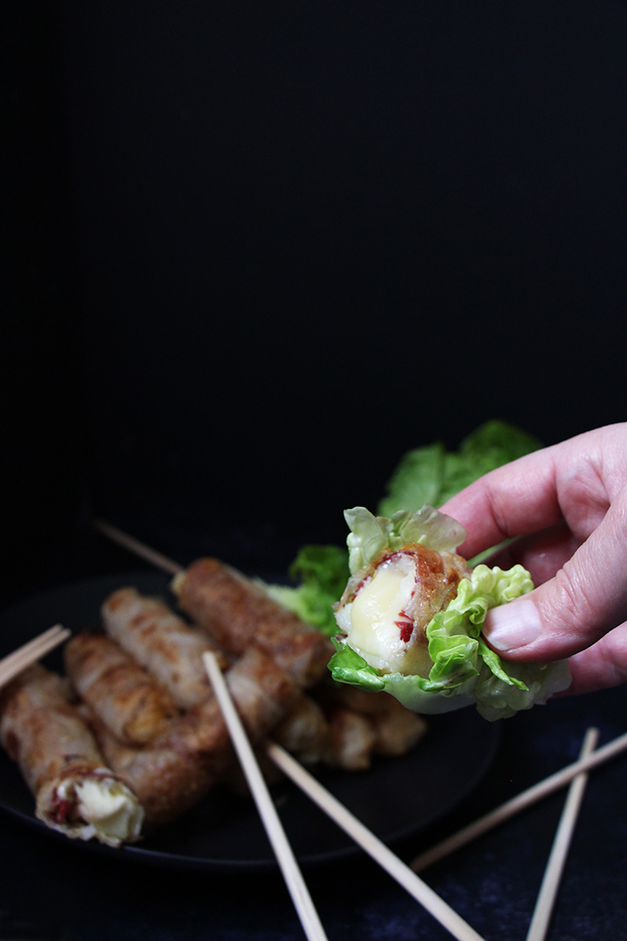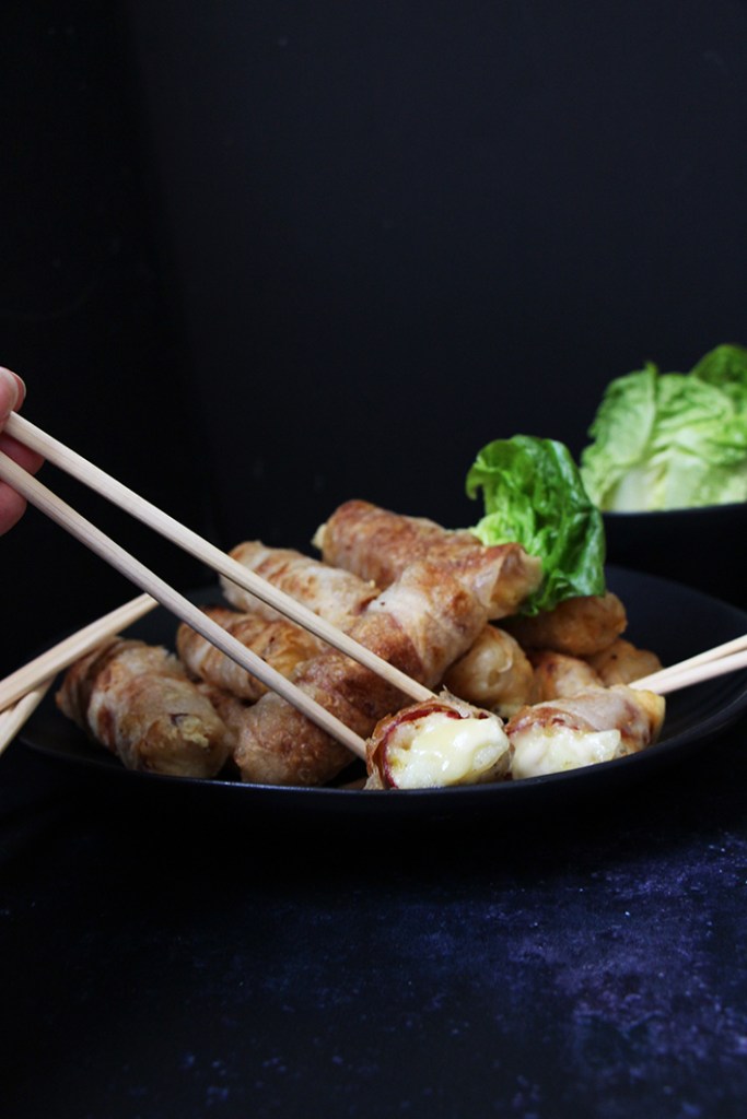 Je craaaaaque littéralement pour cette recette. Ca me donne tellement envie… Il n’est que 17h30 et j’ai déjà faim alors voir ces petits nems dégoulinants de fromage… Miam