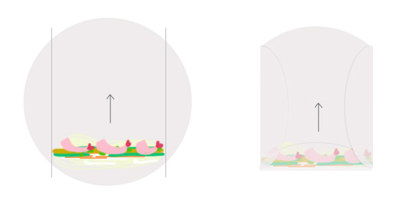 Disposez une tranche de viande de grison à 2 cm du bord devant vous. Ajoutez, par-dessus, deux à trois tranches de pomme de terre, quelques rectangles de fromage à raclette.