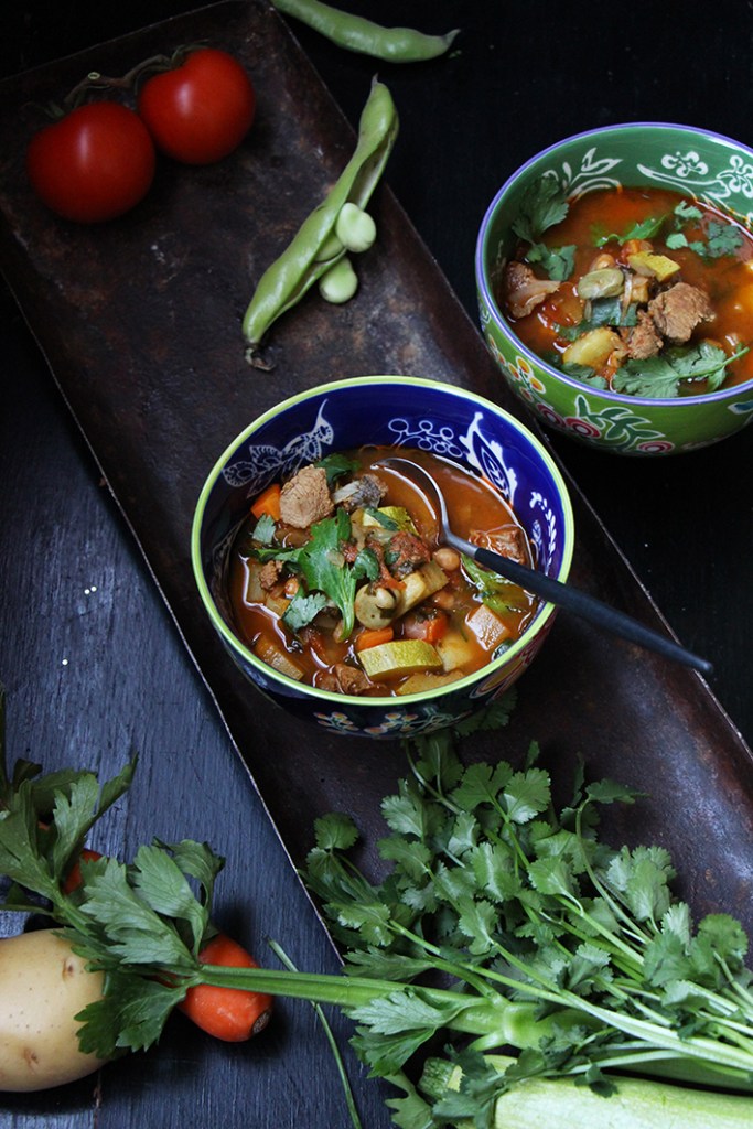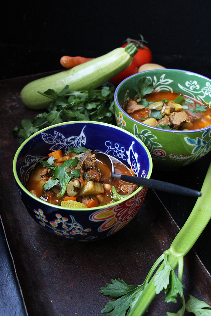 C’est prêt ! Servez dans de jolis bols et parsemez de feuilles de coriandre et de menthe séchée. Mettez des quartiers de citron sur la table, pour que chacun puisse arroser sa chorba de jus de citron, s’il le souhaite. Dévorez !