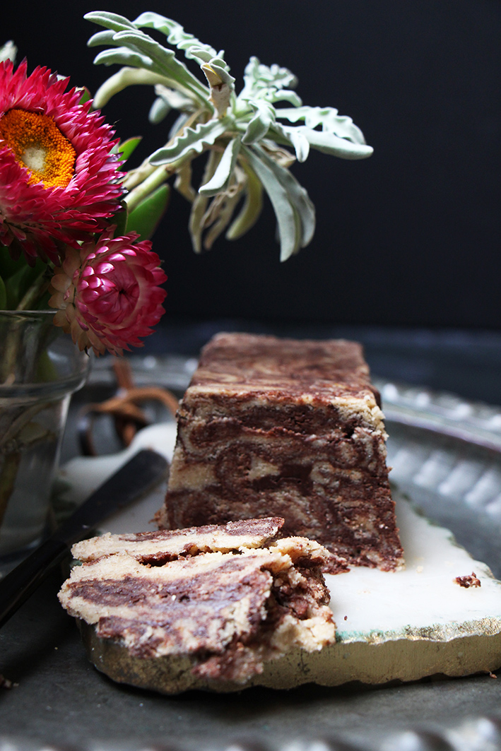 Déjà avant de partir en Grèce, on avait une furieuse envie de faire un « marble » halva, parce que c’est joli, que ça ressemble à un beau morceau de marbre veiné de chocolat. Enfin, j’en avais plus envie que Sandrine, parce que le halva elle n’est pas fan ! Notre papa en achetait souvent que ce soit en Syrie ou à Paris. Souvenirs, souvenirs. Ahahah pardon, pardon, tout le monde ne sait pas ce qu’est la halva. C’est une confiserie d’origine turque à base de crème de sésame. Ce nom est dérivé de l’arabe ḥalwā qui veut dire douceur ! Bref…