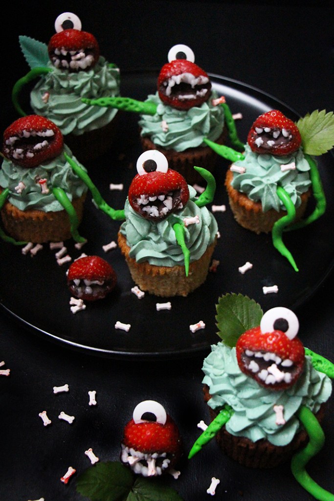 Et voilà, il ne reste plus qu’à décorer vos cupcakes aux fraises carnivores et les manger avant qu’elles ne vous dévorent !