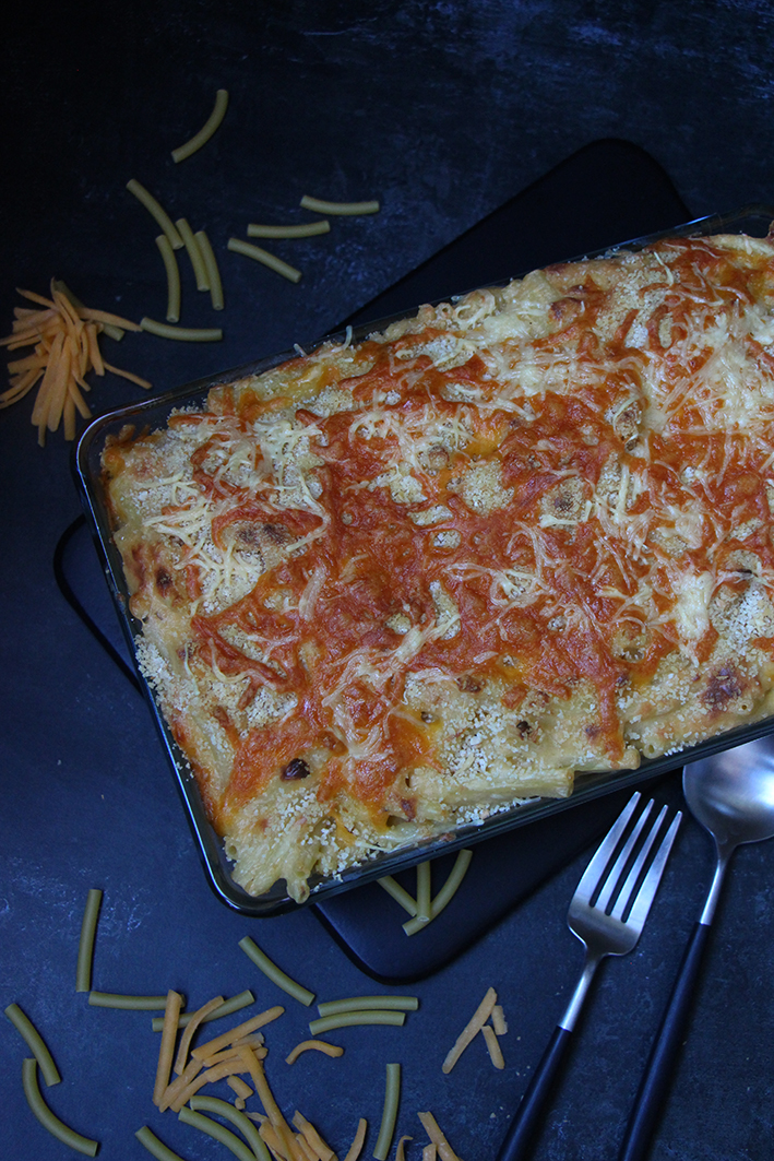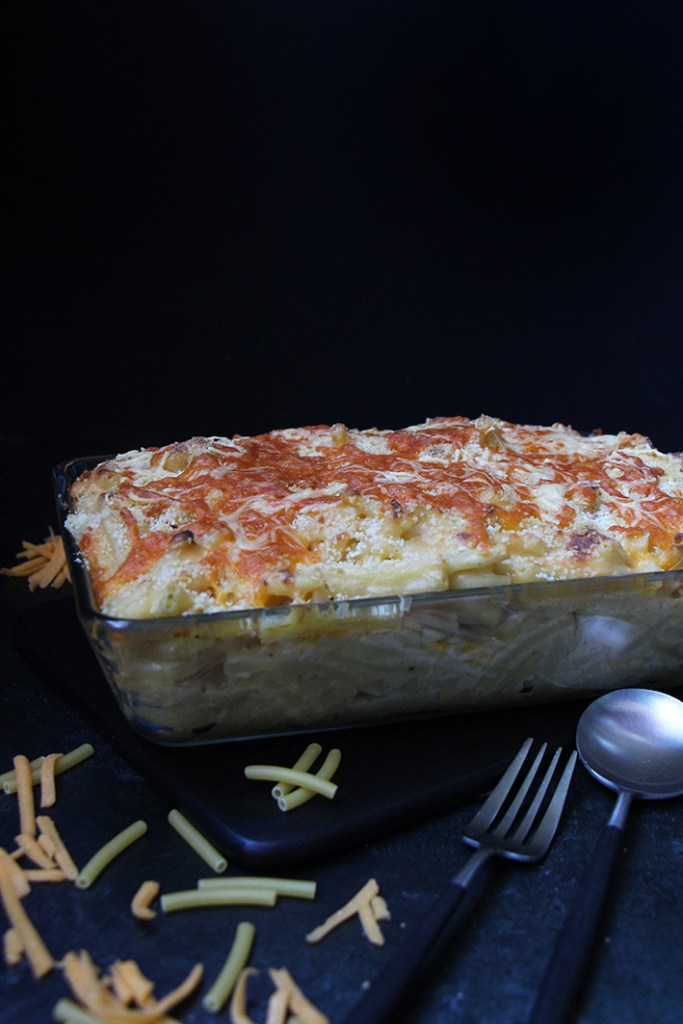 Enfournez 25-30 minutes, jusqu’à ce que le fromage soit bien fondu et grillé. Dévorez avec une salade ou une bonne dinde rôtie.