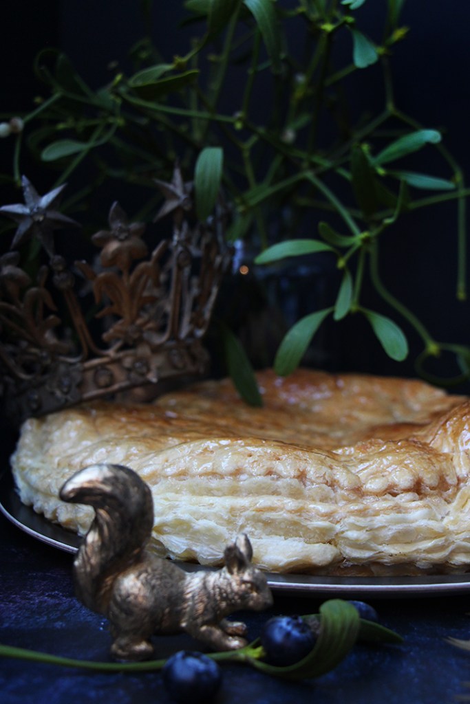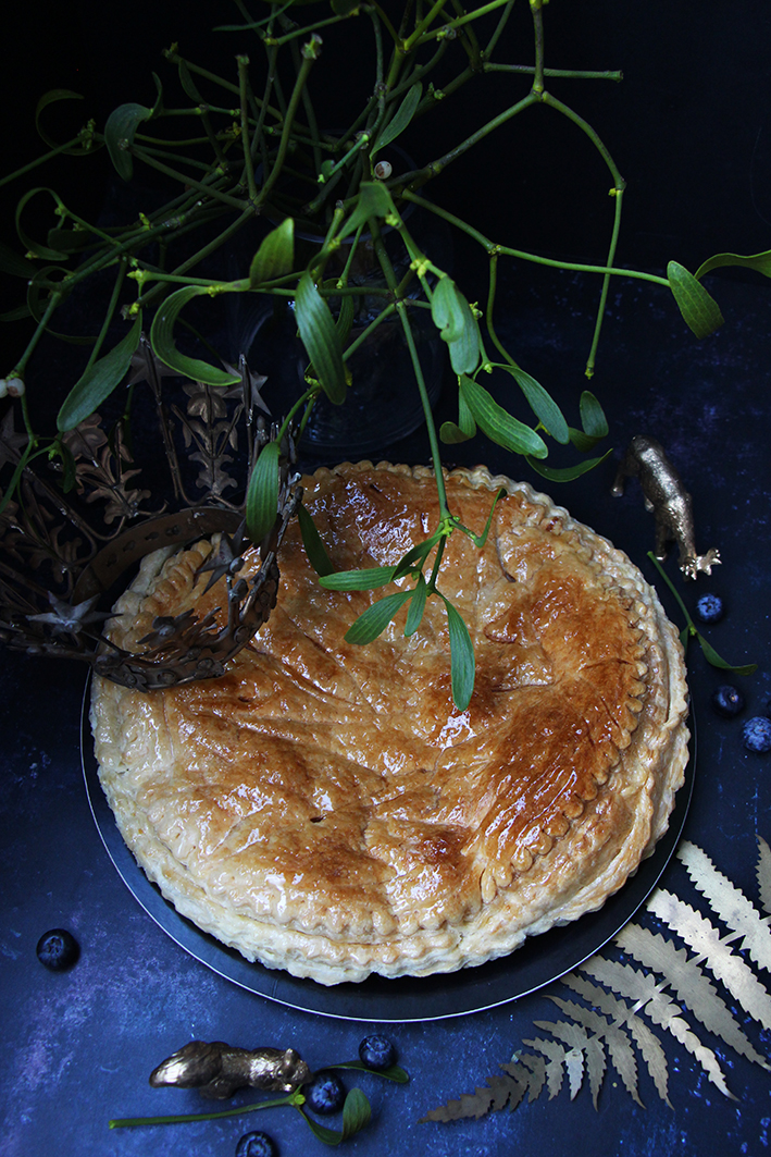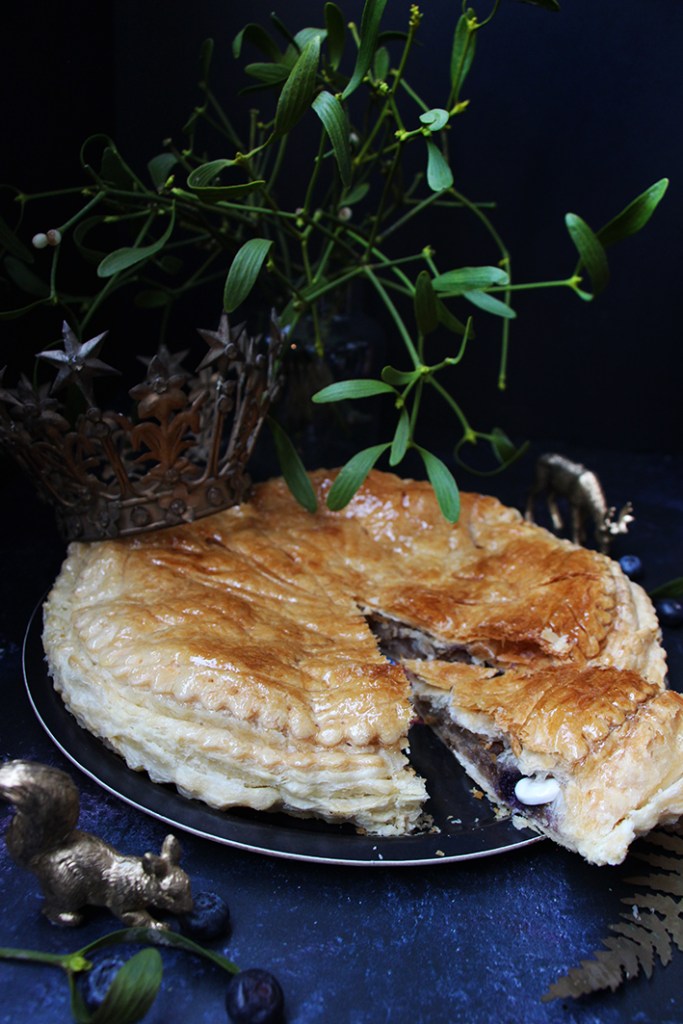Déroulez la pâte sur une plaque de four. Découpez-la à la taille que vous voulez. Piquez la pâte avec une fourchette. Versez la crème d’amande/marrons en respectant une marge de 2 cm sur tout le tour pour pouvoir sceller les 2 pâtes ensemble. Cachez une fève. Répartissez de la brisure de marrons glacés et des myrtilles fraîches.