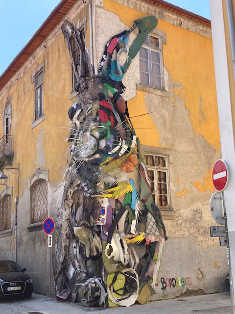 On a traversé le Douro. On a emprunté l’impressionnant pont Dom Luis I, construit selon les plans de Théophile Seyrig, collaborateur d’Eiffel, qui enjambe le fleuve. Plusieurs fois, même, tant le spectacle est beau. On a rejoint l’autre rive. Ici, ce n’est plus Porto, mais Vila Nova de Gaia, où se tiennent les grosses maisons de vins de Porto : W. & J. Graham’s, Taylors, Ramos Pinto, Calem, Sandeman… On a croisé un lapin et on s’est attablées à la terrasse du marcado Beira-Rio, qui rassemble plusieurs stands de cuisine locale, et goûté un arroz de marisco et des crevettes à l’huile, ail et citron. Après on a pris le bateau, fait le tour des six ponts, admiré les deux villes qui s’élevaient et s’étiraient le long du fleuve et puis, on a cramé ! On a repris le pont, regardé le coucher de soleil et un soir, on a vu la brume ramper d’une rive à l’autre, comme un serpent humide.