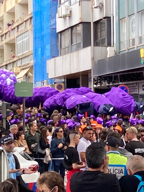 Arrivée à Trindade, la station centrale, là, c’est une foule de jeunes gens portant chapeaux haut-de-forme de couleurs qui ont envahi le quartier. Les garçons portent un costume à la veste mi-longue. La couverture s’avère être une cape, qui tombe aux chevilles. Mais que font tous ces jeunes ainsi déguisés ? On les croirait tout droit sortis de Poudlard, mais c’est JK Rowling, qui s’est inspiré de la « capa e batina », ce costume indissociable de la « praxe académica » qui remonte au XIVe siècles, et qui marque la Queima das Fitas, la célébration de fin de cursus universitaire pour les uns, et l’intégration des étudiants de première année dans les associations universitaires, pour les autres. Bizuteurs et bizutés vont défiler dans la ville sous les regards d’une foule amassée sur le tracé du parcours. Parmi les badauds, on reconnaît les parents venus suivre le défilé, parce qu’ils tiennent à la main des roses peinturlurées aux couleurs des chapeaux de leurs rejetons. C’est le bordel. Nous, on se fraye un chemin comme on peut pour trouver notre hôtel. Voilà un début de voyage inattendu et singulier ! Valises posées, on repart à l’assaut de Porto. La fête s’étire jusqu’à la place de la liberté qui porte bien son nom en ce jour de célébration. L’alcool coule à flot ! Les étudiants braillent et se lancent dans de courtes cavalcades. C’est joyeux et semble-t-il bon enfant. Plus tard, nous en croiserons certains juchés sur une fontaine jouant à s’éclabousser et d’autres, qui sans doute, relevant un défi, se jetteront dans le bassin à l’eau bien saumâtre, d’un jardin de la ville.