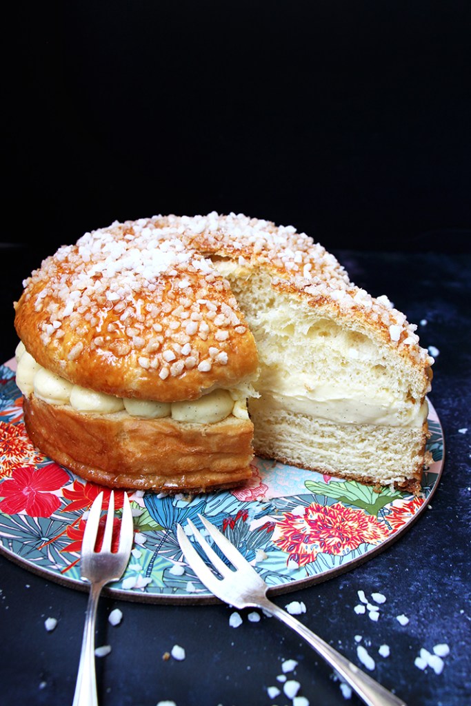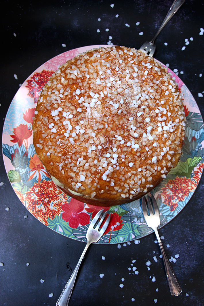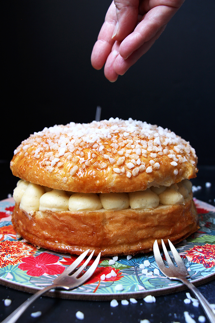 On rêve de mer. Notre petite escapade en Auvergne n’a pas rassasié notre envie d’entendre le ressac, de se baigner, de plonger les vagues… Sandrine, ce matin a dit : « p’être que dans une autre vie, on habitait à la mer ! ». Bah p’être, parce que là, on est clairement en manque. On veut snifer l’iode ! On veut se retourner le cerveau hypnotisé par l’océan… Du coup on a fait une tropézienne… Ouais, ce n’est pas la destination qu’on choisirait pour s‘échouer sur le sable, mais voilà, on est dimanche et c’est jour de dessert, alors Saint-Tropez, nous voilà ! Do you, do you… Pâtissez, partagez, dévorez !