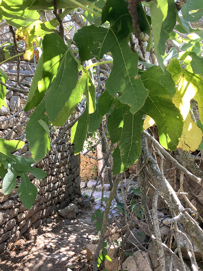 Derrière l’hôtel, à la sortie de la ville, nous trouvons le chemin rocailleux qui borde le ravin et monte, à travers le maquis, jusqu’aux ruines. Sandrine part à fond de balle, comme une chèvre. J’accélère pour la rattraper et je manque de crever tant la pente est rude. Bref… Au bout de 30 minutes de grimpette, nous y sommes… Occises. Ce lieu porte bien son nom ! Le village nous rappelle les villes mortes de Syrie, que nous adorions visiter. Le temps de faire le tour, de ramasser quelques feuilles de figuier et nous revoilà parties. Le vent se fait rafales, nous obligeant à nous arrêter de temps en temps sur notre chemin escarpé. De nouveau la route et le raccourci. La descente est raide. Le temps file et nous courons presque sur les derniers mètres pour rejoindre la gare, que nous atteignons, 5 minutes à peine, avant que le train n’arrive. Quelle course !