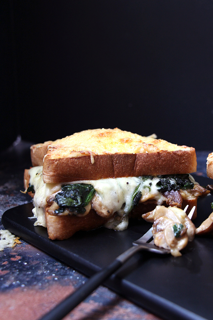 Bon si vous avez suivi, vous savez qu’on était allées se promener dans le marais avec des amis, samedi, d’il y a deux semaines. Ce jour-là, On est passé à proximité de Carré Pain de Mie, rue Rambuteau. Vous ne connaissez pas ? Non, nous non plus ! C’est une boulangerie qui fait du pain de mie à base de farine japonaise. Et donc, Clémentine, notre super copine dont on vous parle souvent parce qu’elle connaît toutes les nouvelles adresses gourmandes de la capitale, voulait absolument qu’on goûte. Aussitôt dit aussitôt fait, nous voilà tous repartis avec, chacun, notre sac de tranches de pain de mie. Merci Clem et Mathieu ! Le verdict : Ce sont des tranches énormes et elles sont vraiment délicieuses. On aurait pu toutes les manger nature, mais on avait déjà prévu de faire des croque-monsieur aux champignons, épinards et plus encore. Bah du coup, on a utilisé ce pain de mie XL. On s’est régalées. Faut quand même avouer que c’était super-copieux, mais quand on aime, on ne compte pas ! Alors faites comme nous, découvrez, cuisinez, partagez, et dévorez !