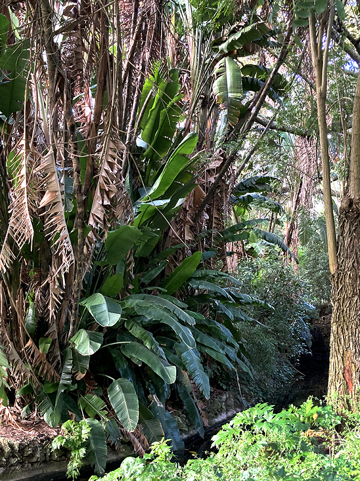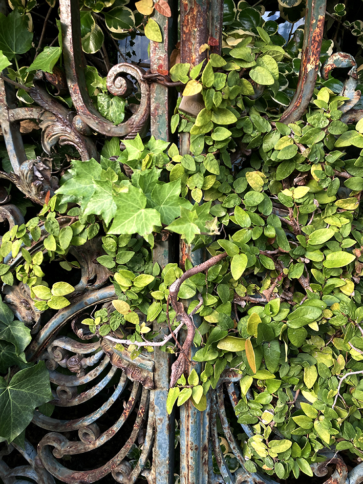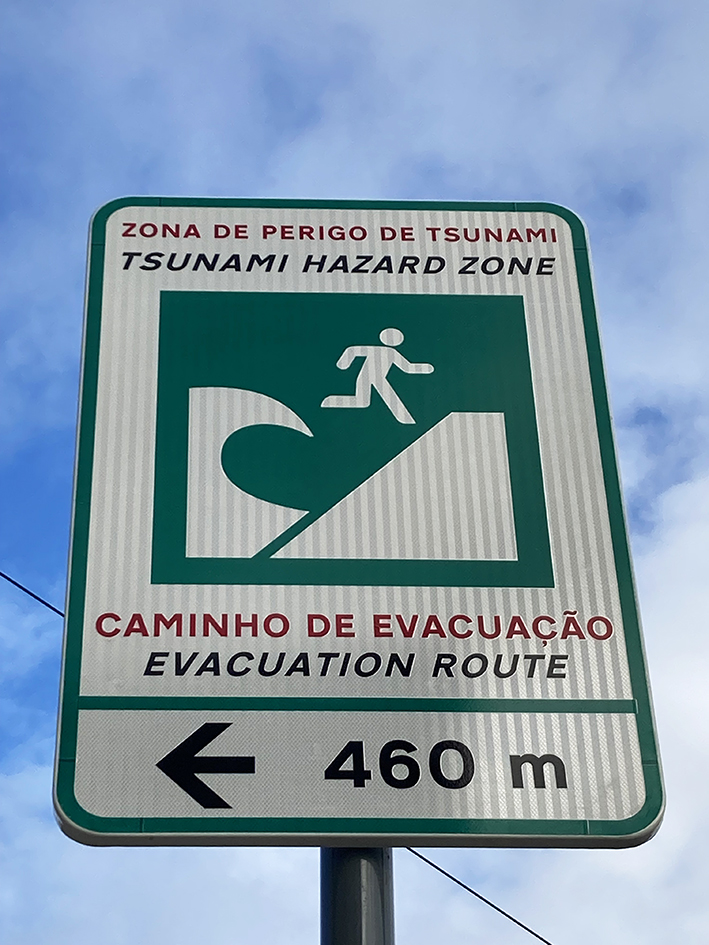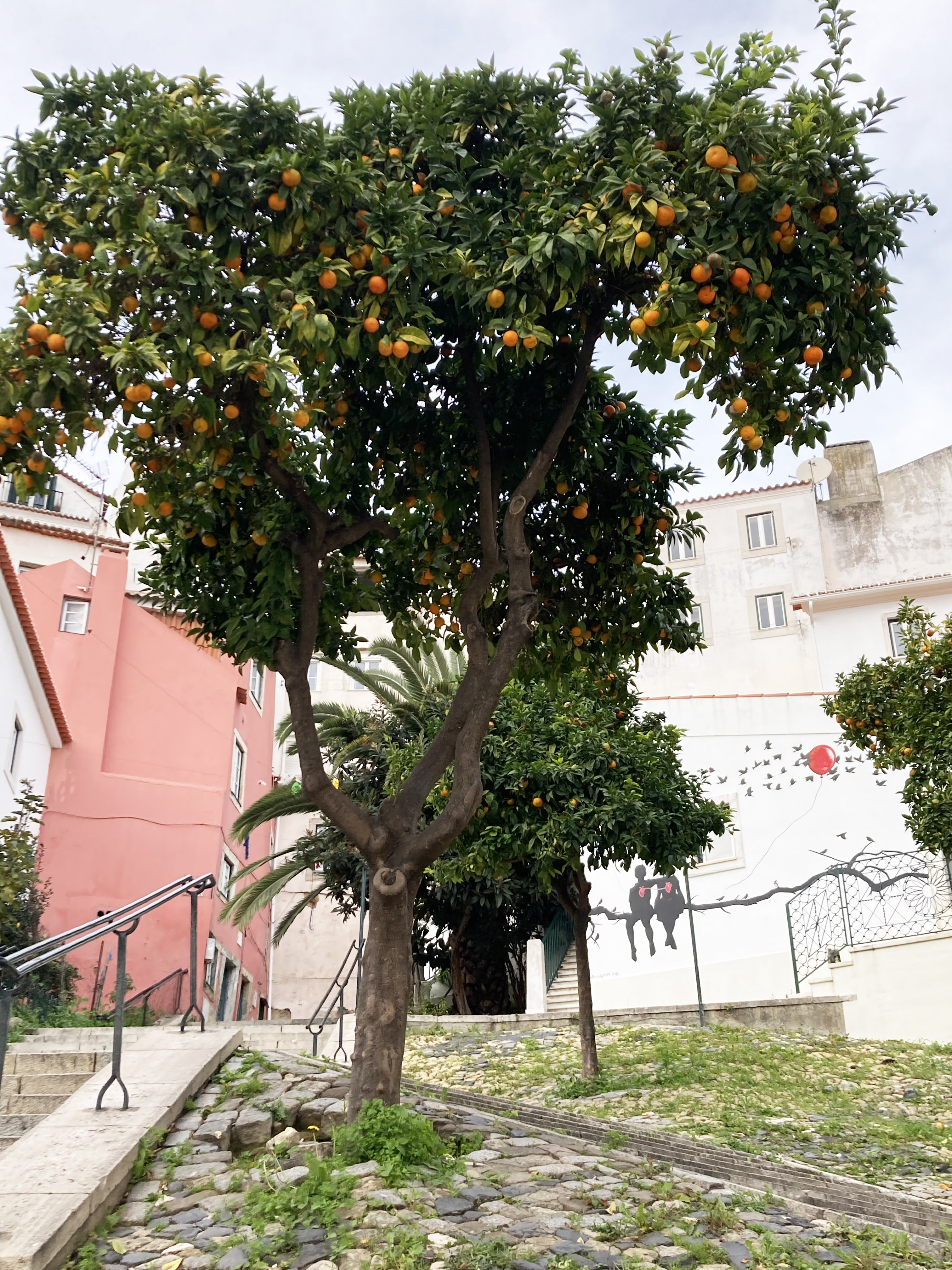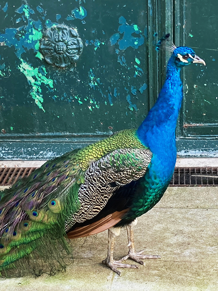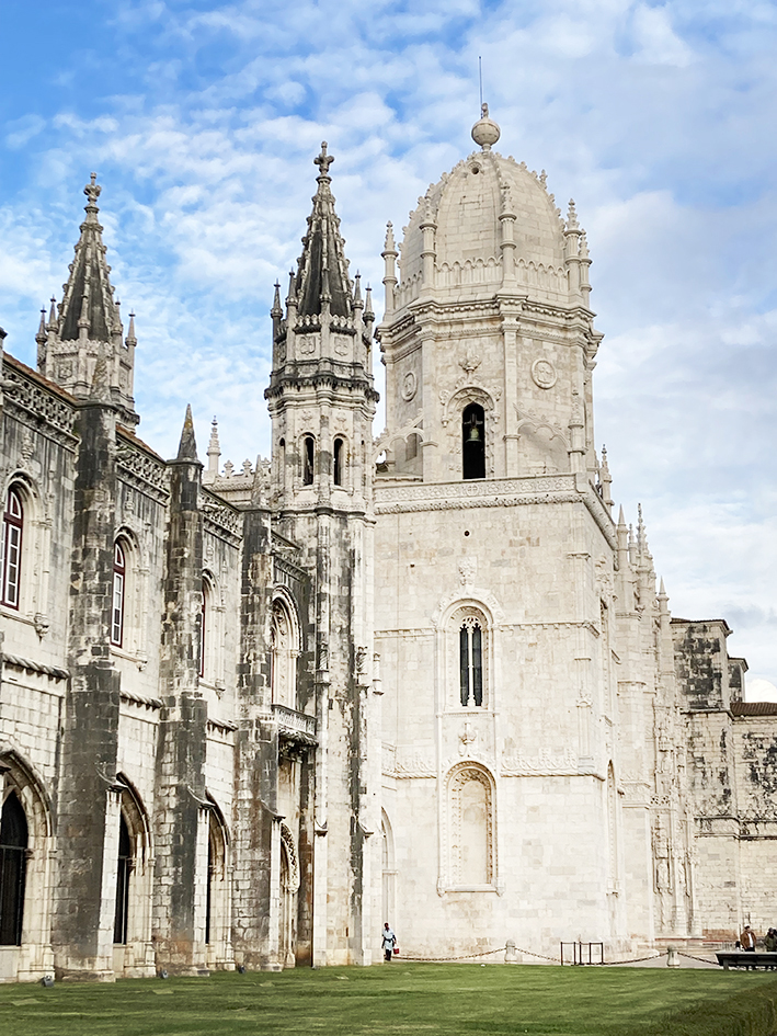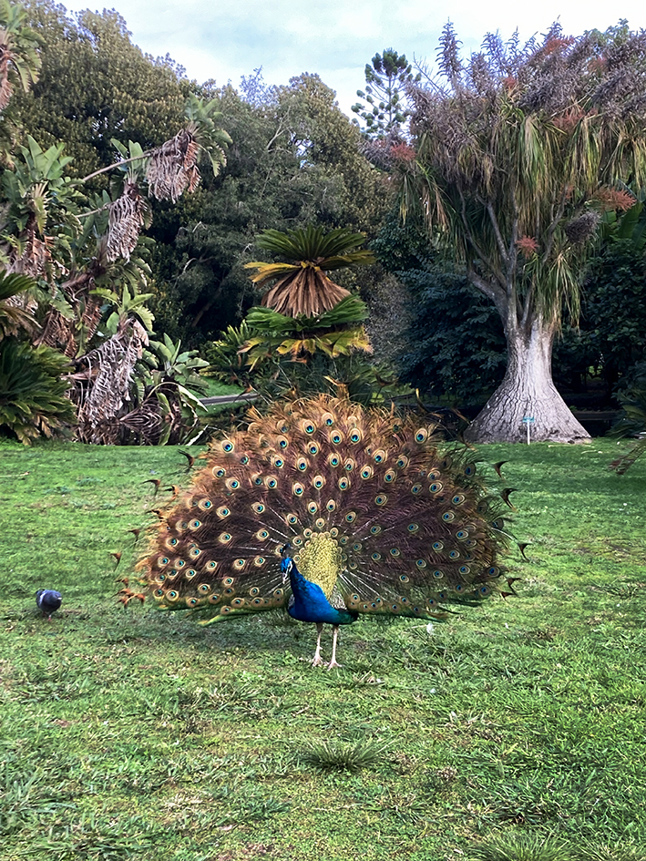 Lundi, direction Belém, pour manger les pasteis les meilleures du Portugal. Tant qu’à faire, on prend aussi des petits trucs à grignoter salés. On dévore tout, enfin presque parce qu’une mouette, m’attaque. Elle tape ma main de sa patte, la gueuse, pour me faire lâcher ma prise. Mon bout de croquetas s’envole et d’autres mouettes fondent sur moi pour essayer d’attraper ce met de choix. On dirait le film Les oiseaux d’Hitchcock. Ouh la c’est dangereux ! Pourtant le seul risque mentionné sur la place et celui de tsunami ! Ajoutez les mouettes les gars ! Elles sont redoutables…. À part ça, le Monastère des Hiéronymites est fermé. Ben oui, on est lundi. Tant pis on l’a déjà vu. Léo et Ema filent au musée de la marine et nous, on s’offre une pause au jardin botanique. On tape la discute avec des paons. On s’extasie sur la belle porte, en fer forgé, de la serre, en réfection, cadenassée de lierre. On dirait que derrière se cache le château de la belle et la Bête. On se repose sur un banc, la tête dans le ciel bleu. C’est tropical, il fait 17° !
