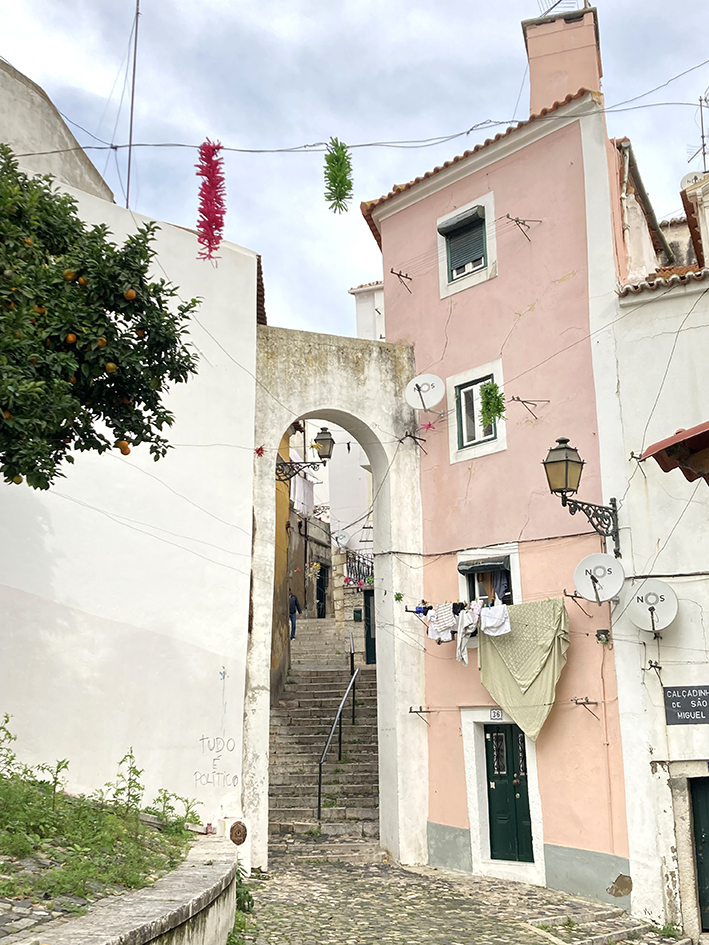 Retour à Lisbonne, direction le quartier de l’Alfama, le quartier le plus ancien et un des plus typiques de la ville. On cherche un bar sympa. Léo en « googuélise » un. Le hic, il est tout en haut de la colline, enfin de la montagne, sur la place de la Igreja da Graça. « T’es sérieux là ? ». On prend un escalier infini mais qui a de larges paliers, ce qui rend la montée moins ardue. Mais quand, même ! Nos jambes sont en mode automatique. Ça vaut mieux. Enfin le sommet. Il n’est que 18h et nos corps nous disent qu’il est au moins minuit. La vue est magnifique. On grignote des toasts au fromage et on boit de la bière. On redescend. Les bars et restos où se joue du Fado sont blindés de monde. Pas grave, de toute façon on est rincés. Pas de resto ce soir.