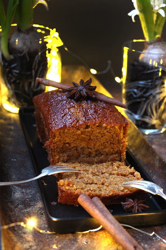 Moule 20×12 cm idéalement. Si votre moule est plus grand, le pain d’épices sera un peu plus raplapla, mais tant que le goût est là !