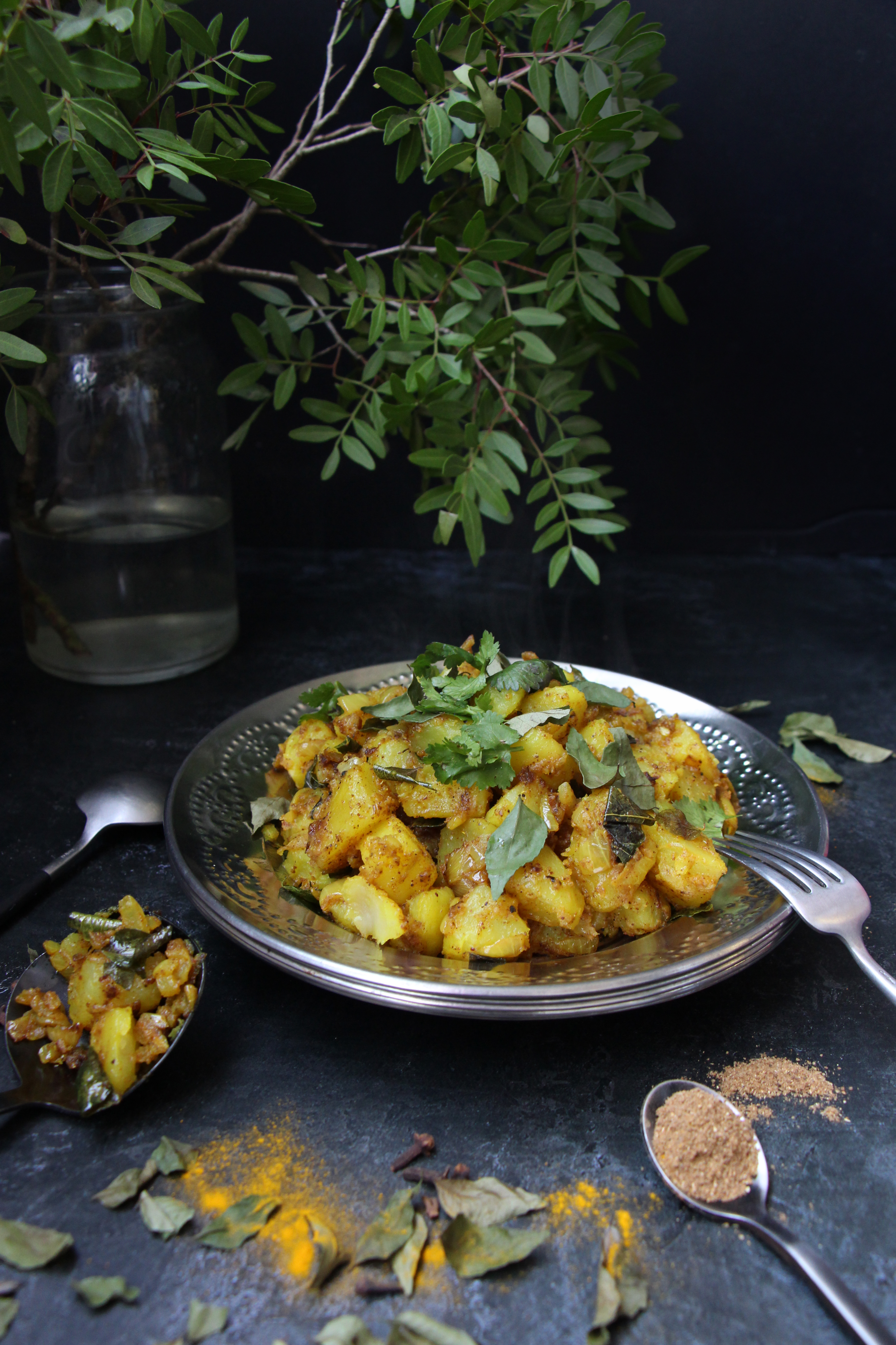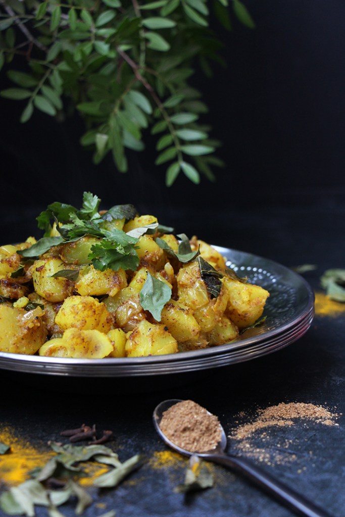 Direction l’Inde pour ce dimanche pluvieux. Ah non, on ne se plaint pas, il faut de l’eau et on espère bien que c’est partout en France pareil, vu la sécheresse ! En ce moment, même saucées et rincées – ça nous est arrivé plusieurs fois, vu qu’on oublie souvent nos parapluies – on dit merci à Monsieur et Madame la pluie ! Ah cette conscience écolo… Bref, on a fait des patates délicieusement parfumées aux épices et ça ravigote les papilles, ça réchauffe le cœur et ça fait voyager. Tout ce qu’on aime. En plus, ce n’est pas compliqué comme recette, il faut juste quelques épices et, ah oui, les feuilles de curry, un peu plus dur à trouver, mais, au pire du pire, on en trouve sur internet. Alors, cuisinez, voyagez, partagez, dévorez !
