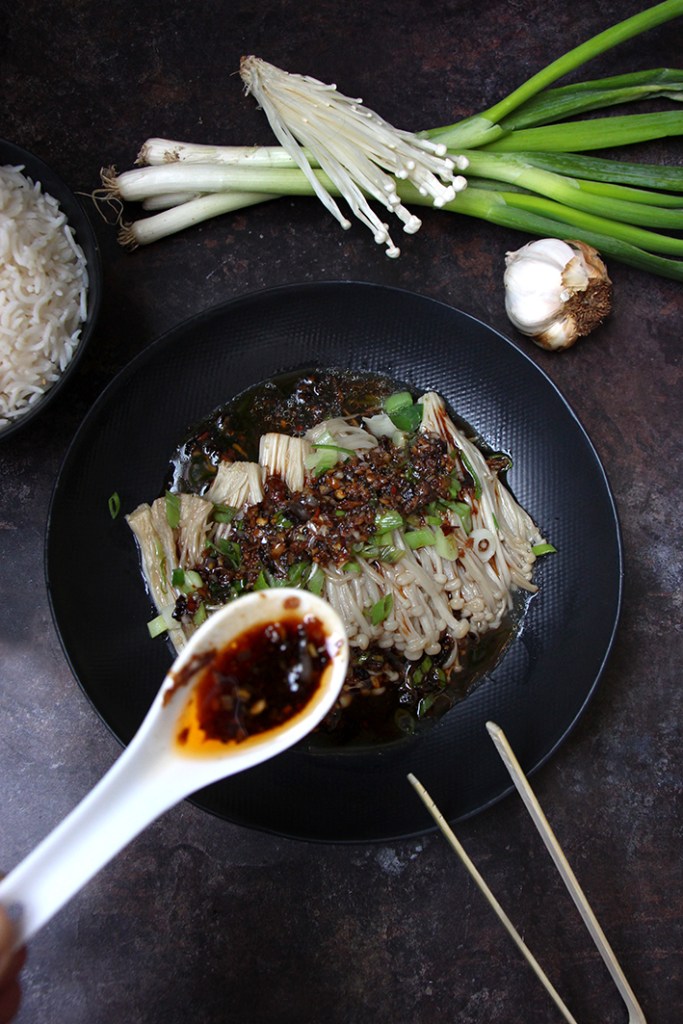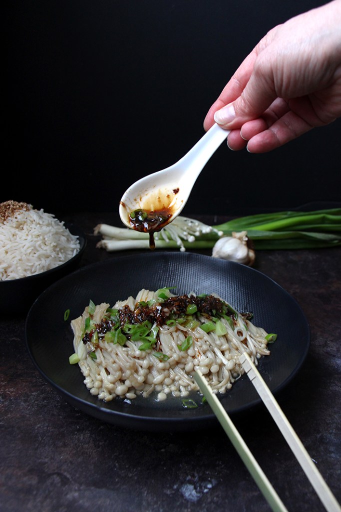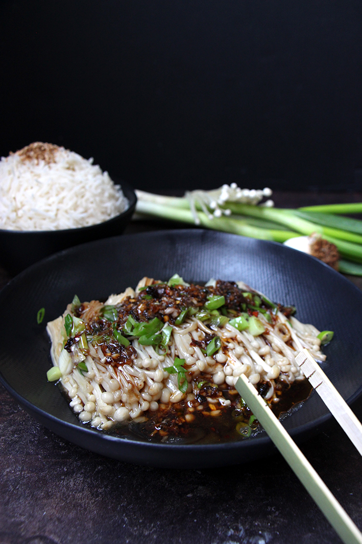 Non, toujours pas de crêpes. On reste engluées dans notre « trip asiat » et les dragons. Daenerys (Mère des dragons dans Game of Thrones) sort de ce corps ! Mais ça y est on est rentré dans l’air de celui de bois ! Happy new year ! Et la Saint-Valentin ? Ahaha, on y pense un peu, beaucoup, à la folie, pas du tout… Ce n’est pas dans notre ADN ce truc marketing avec des petits cœurs partout. C’est capillotracté. Quelqu’un qui aime à des petites attentions tout au long de l’année, non ? Pas besoin d’une date. Certains diront, c’est comme Noël ou Halloween. Non, on n’est pas d’accord. Ces fêtes sont magiques. Il y a l’ambiance, la déco, les déguisements. Ça doit être les cœurs, le rouge et le rose qui dégoulinent, ça ne passe pas. Ça c’est fait ! Bon, et la recette du jour alors? Les champignons Enoki nous ont fait de l’œil. Tout petits, tout mimis, tout croquants. On est tombé en amour. NOOONNNN, on rigole ! 😀