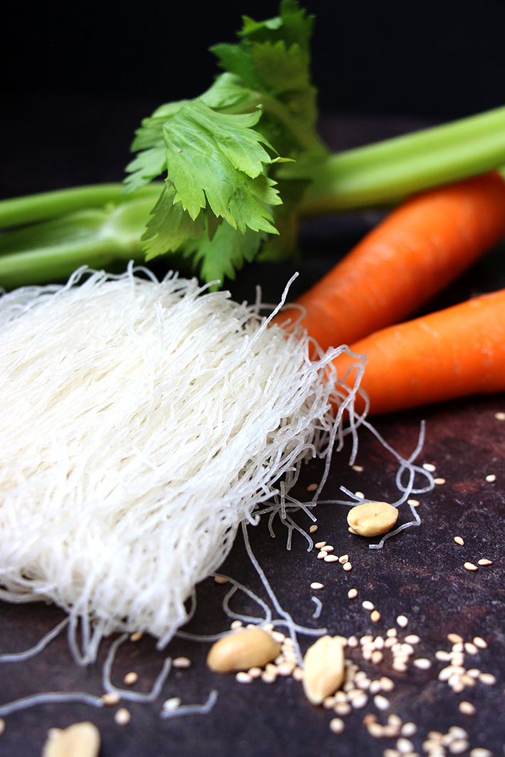 Salade asiatique aux vermicelles de riz, carottes et céleri-branche