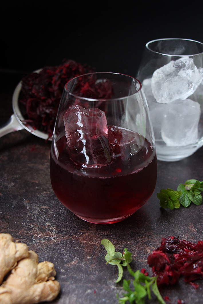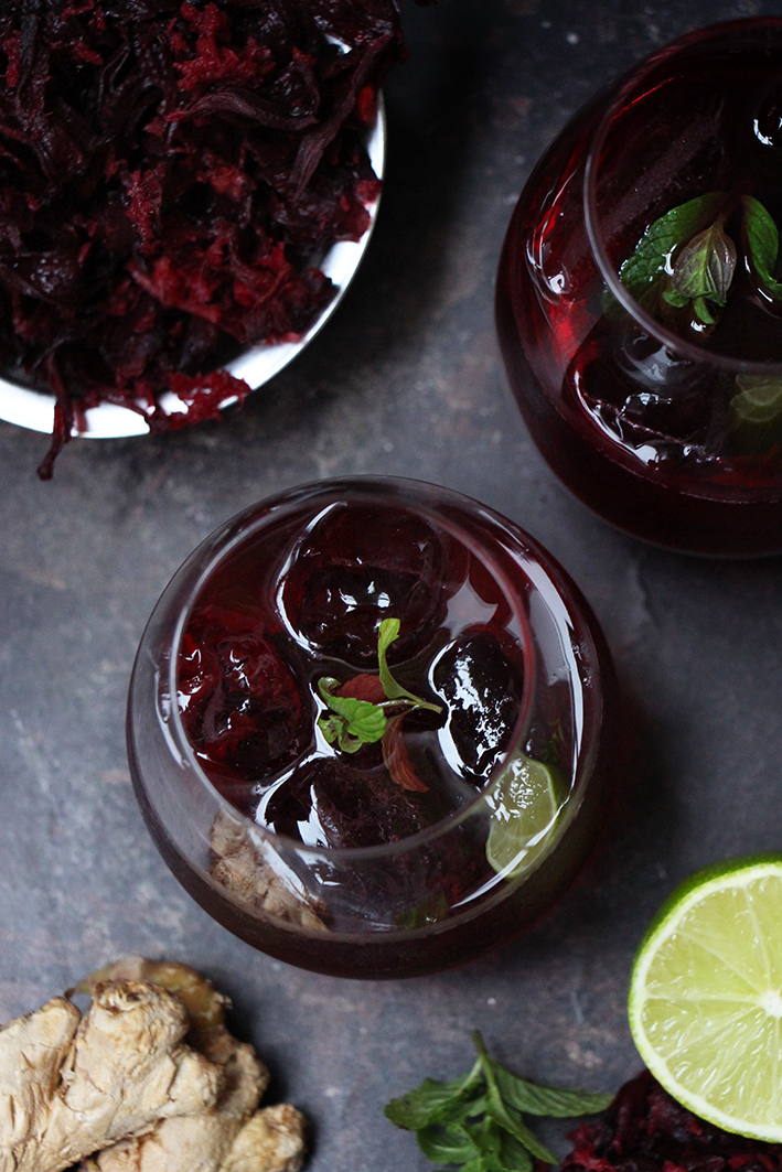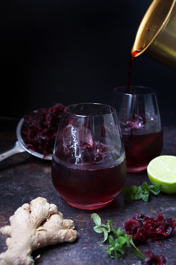 Cocktail rhum, hibiscus (Bissap), gingembre