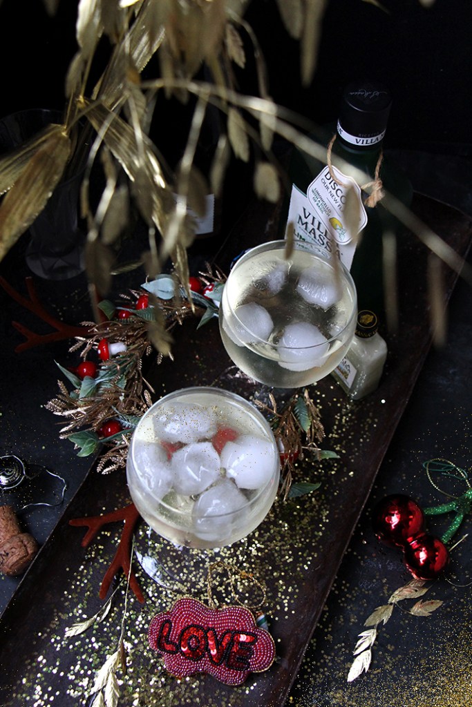 Déposez des glaçons au fond du verre. Versez d’abord le Limoncello, puis le Prosecco et l’eau gazeuse. Décorez avec quelques feuilles de menthe ou une rondelle de citron (on a oublié). Trinquez et dévorez !