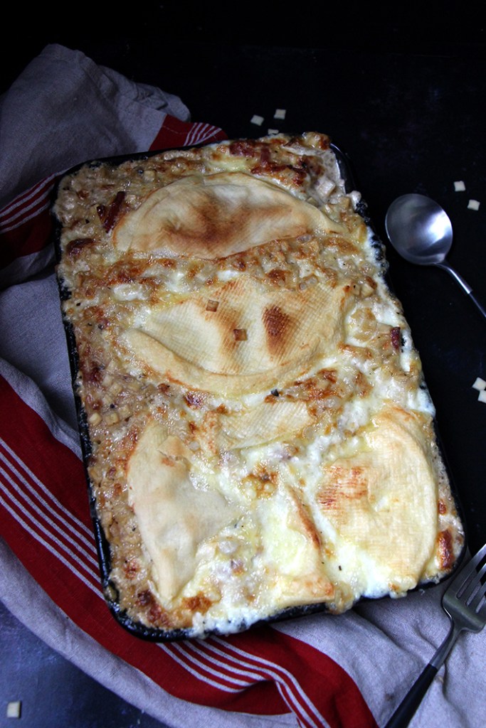 Ah, Paris sous la neige… Quelle belle carte postale, surtout quand ça tient ! Le silence feutré, les trottoirs immaculés… Immanquable ! Alors forcément, on sort se balader à la montagne – enfin… à Montmartre, bien emmitouflées, le nez rougi et les mains gelées par le froid, pour profiter du spectacle. Même ambiance, même dénivelé, même glisse approximative. Il y avait des enfants (et leurs parents) hilares, tirant leurs luges, des grands redevenus gamins, tentant de glisser avec des skates sans roues, et même un mec avec ses skis. Oui, des skis. À Paris. Tranquille. Sans compter les bagnoles, imprudentes, qui jouaient à la patinette dans les rues en pente. Pfff, pour rappel, même à Montmartre, sans pneus neige, les rues pentues recouvertes d’un épais manteau blanc, c’est ambitieux. Bon, bref, cette petite balade dans cette station de sports d’hiver était magnifiiiique. On n’avait pas l’air pur des hauts sommets, ni l’odeur des sapins enneigés, mais on y était. Alors, en redescendant, on s’est dit qu’on mangerait bien un truc bien gras : genre tartiflette, fondue ou une croziflette. Révélation : la montagne, ça « croze » ! Faites comme nous, puis cuisinez gras, partagez et dévorez…